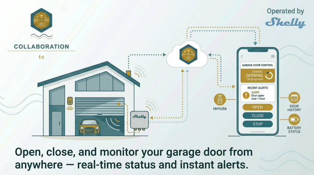 Open, close, and monitor your garage door remotely. Get alerts if left open accidentally.