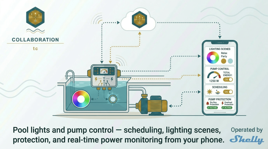 Automate pool pump schedules and monitor operation remotely. Protect the pump from dry running.