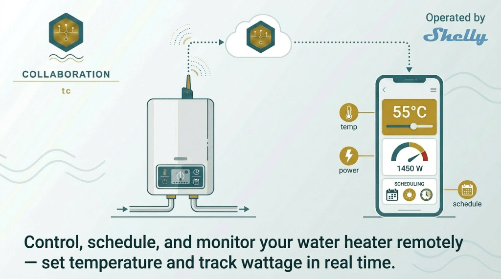 Schedule water heaters to run only when needed. Monitor temperature and power consumption in real time.